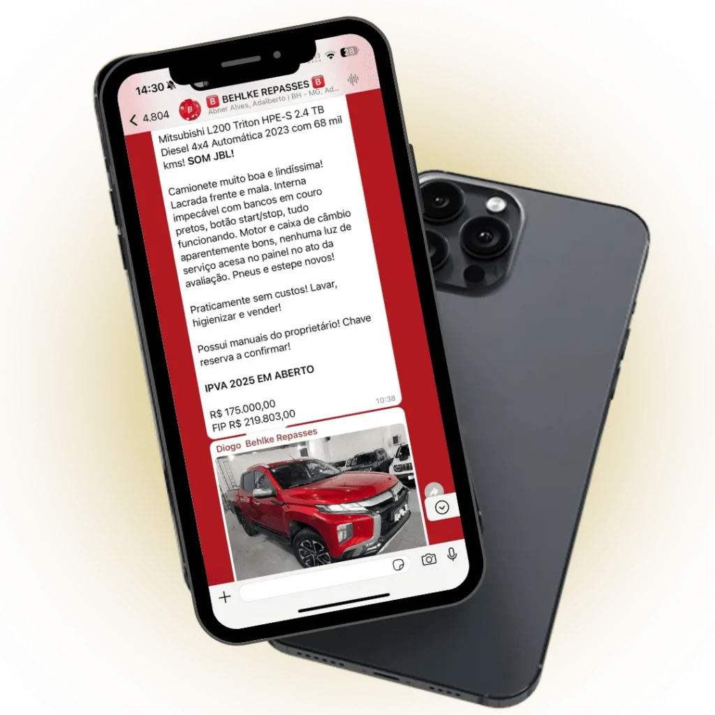 Transforme seu negócio com acesso vitalício a um grupo exclusivo no WhatsApp, onde diariamente você vai receber oportunidades de veículos que elevam suas margens de lucro e potencializam sua loja.